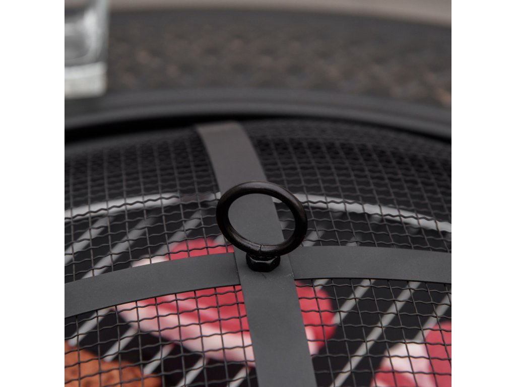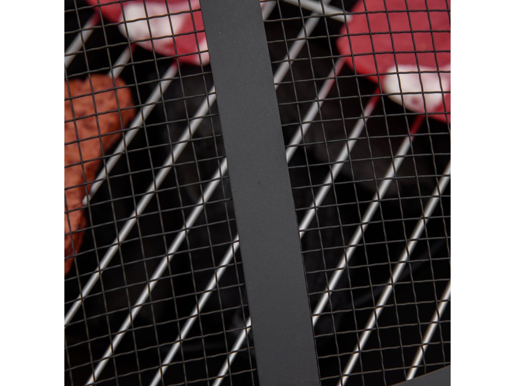 - DŮLEŽITÉ BEZPEČÍ: Praktické síťované víko zabraňuje vylétávání jisker, uhlíků a popela. Dodávaný pohrabáč umožňuje bezpečné přemisťování polen nebo snadné otevírání a zavírání síťového víka.