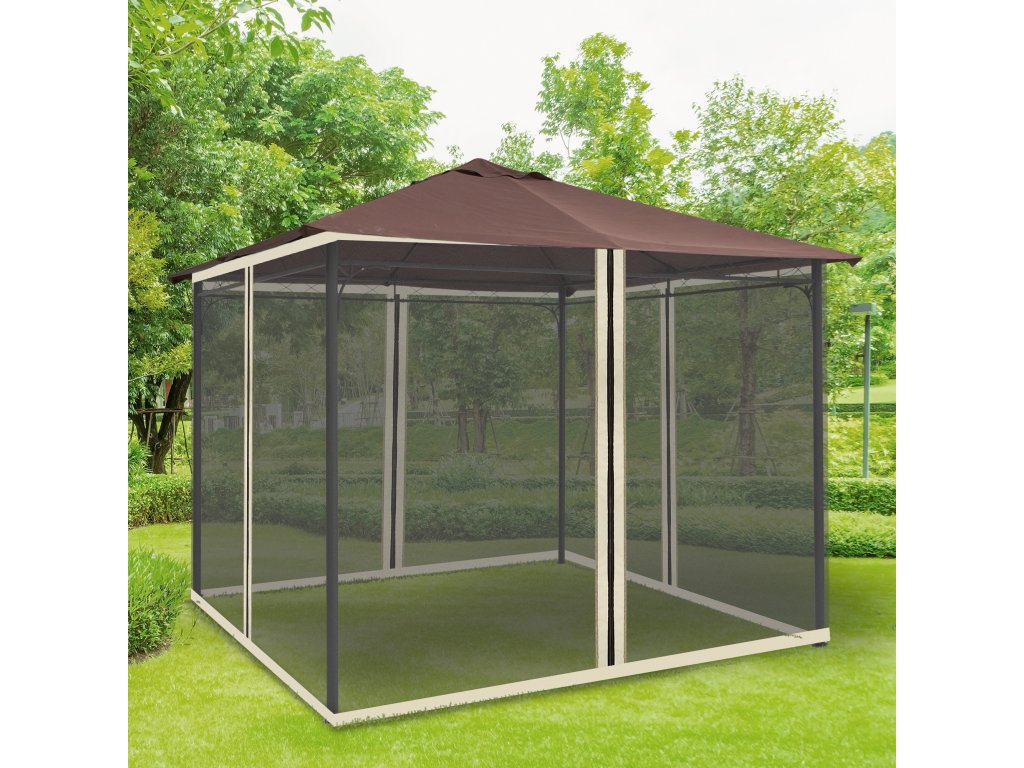Outsunny moskytiéra 3x3m altán se 4 bočními panely, síť proti hmyzu se zipem, odolná z nylonové síťoviny v černé barvě | černá