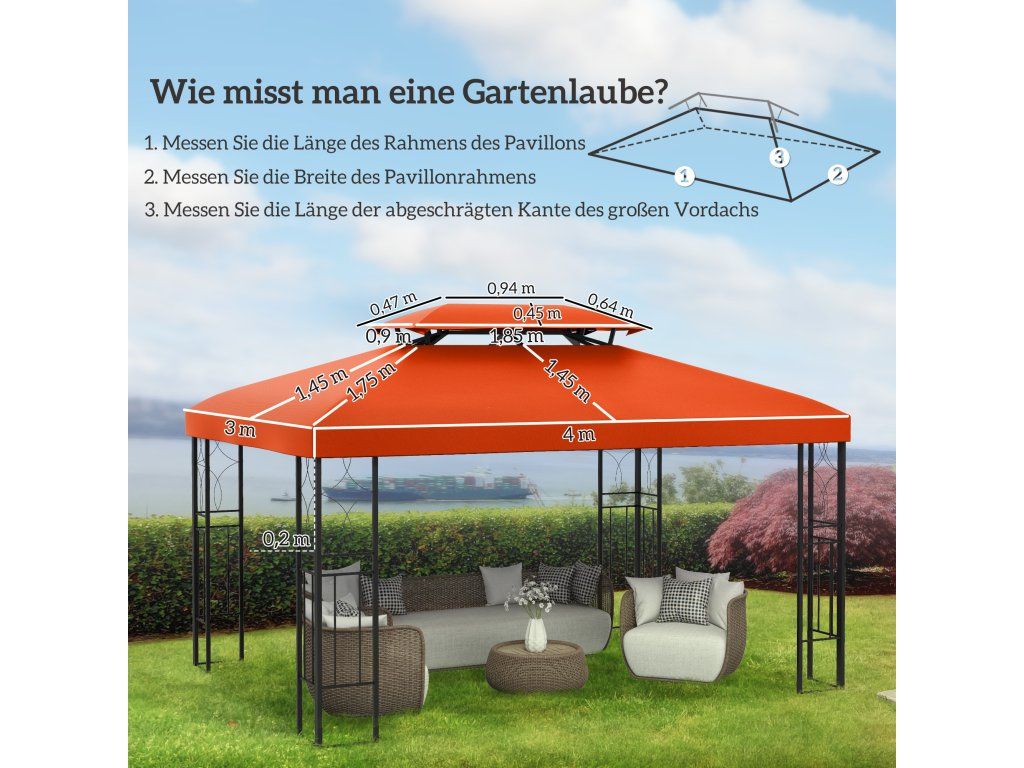 Outsunny náhradní střecha pavilonu 3x4m pro kovový pavilon zahradní pavilon párty stan polyesterový zahradní stan v rezavě červené barvě |
