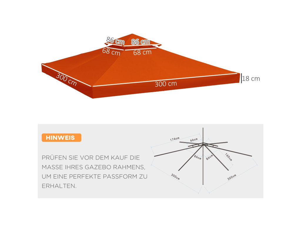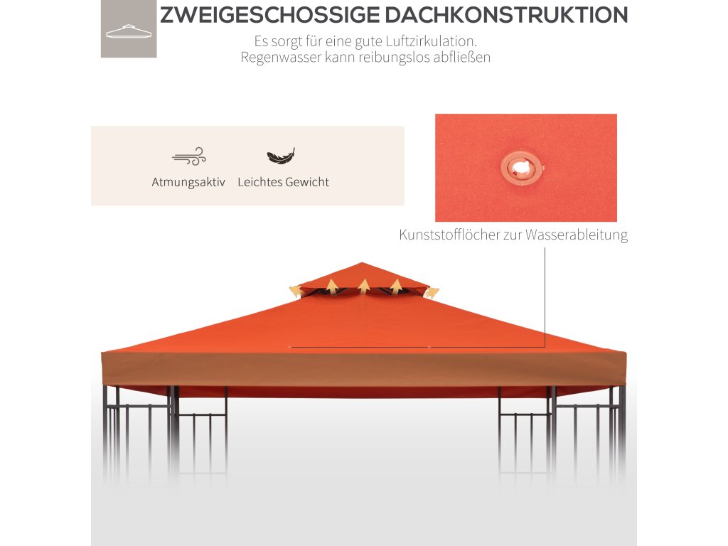 Outsunny náhradní střecha pro kovový altán 3x3m zahradní altán rezavě červený polyester, odolný proti povětrnostním vlivům | Aosom.de