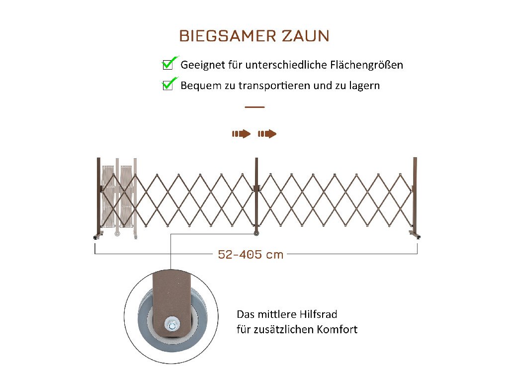 Outsunny Nůžková zábrana Nůžková zábrana výsuvná 52-405cm Zahradní hliníková hnědá H103,5cm | Aosom