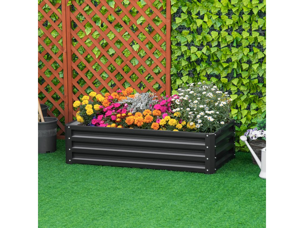 Outsunny ocelový vyvýšený záhon, nerezový truhlík 120 x 60 x 30,5 cm, otevřený zeleninový záhon a bylinkový záhon pro zahradu a balkon, šedý | Aosom.de