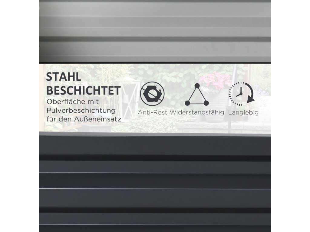 - ✔ Robustní ocelová konstrukce truhlíku s vodoodpudivým nátěrem pro dlouhodobé používání