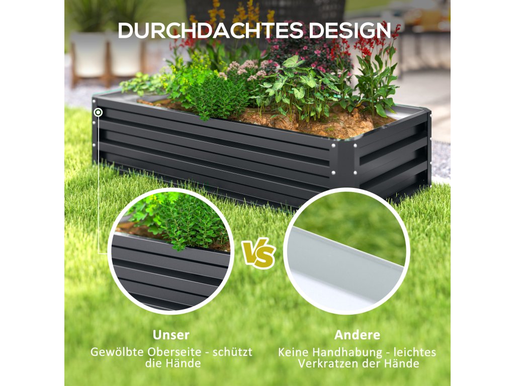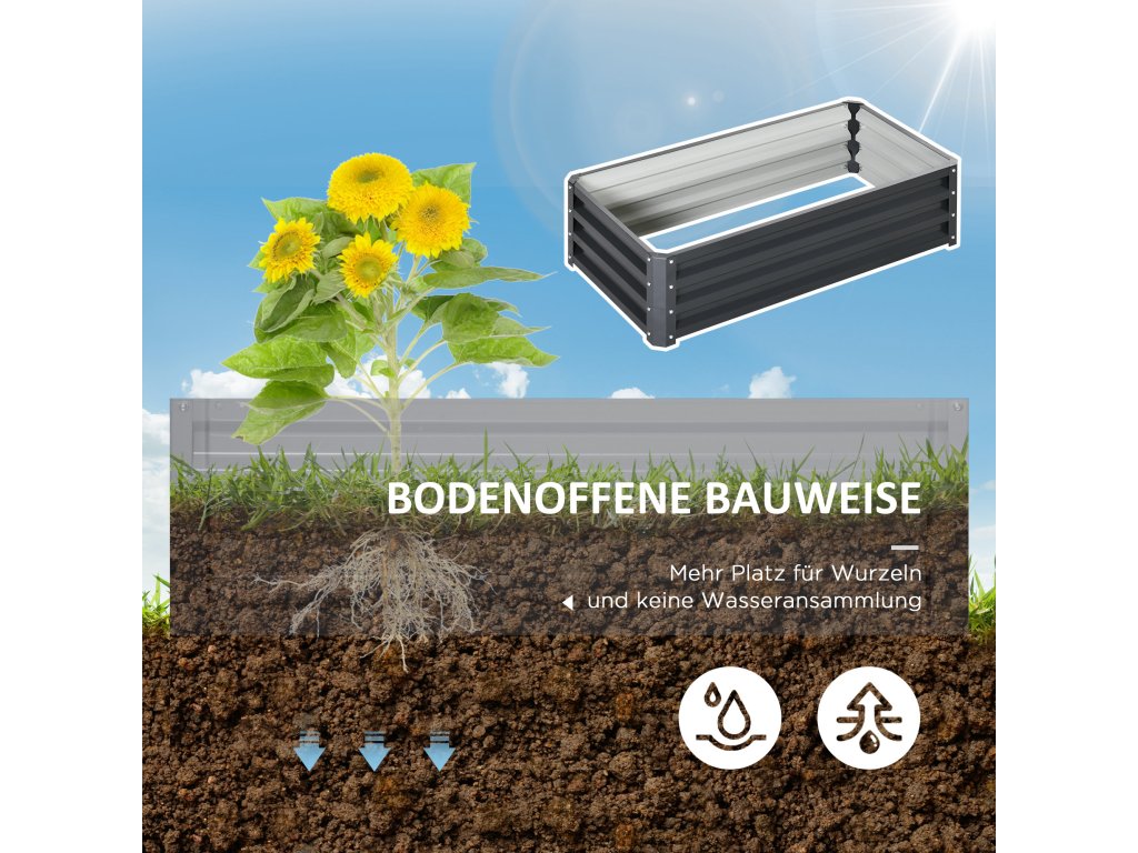 Vyvýšený záhon Outsunny je ideální volbou, pokud chcete na terase nebo na zahradě pěstovat různé druhy rostlin nebo květin a máte jen omezený prostor. Díky extra hlubokým bočním stěnám a otevřenému dnu můžete pěstovat zeleninu s hlubokými kořeny, aniž byste se museli obávat přemokření. Pořiďte si tyto nadzemní zahrádky a udržujte svou zahradu v pořádku s Outsunny.