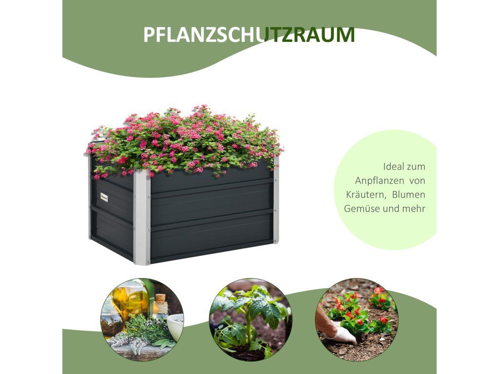 Outsunny Ocelový vyvýšený zahradní truhlík s rukavicemi, robustní, tmavě šedý, 66x47x40cm| Aosom