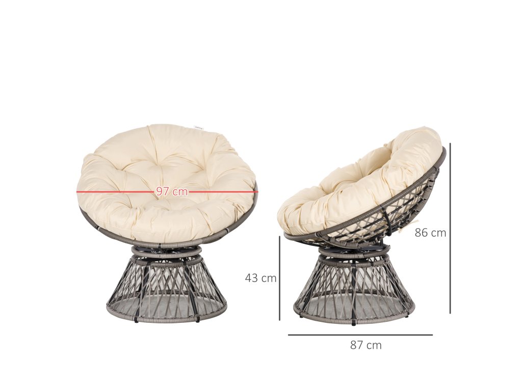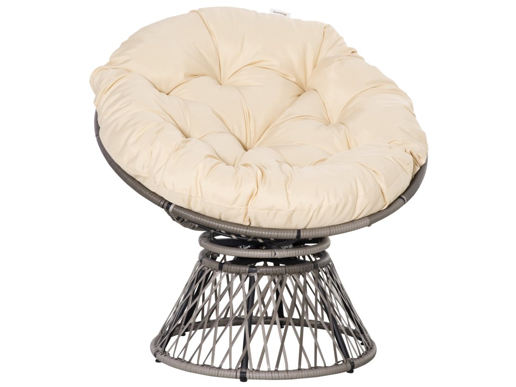 Outsunny papa křeslo Proutěné křeslo 360° polohovatelná skořepina se sedákem z umělého ratanu a kovovým rámem 87 x 97 x 86 cm Cream | Aosom.de