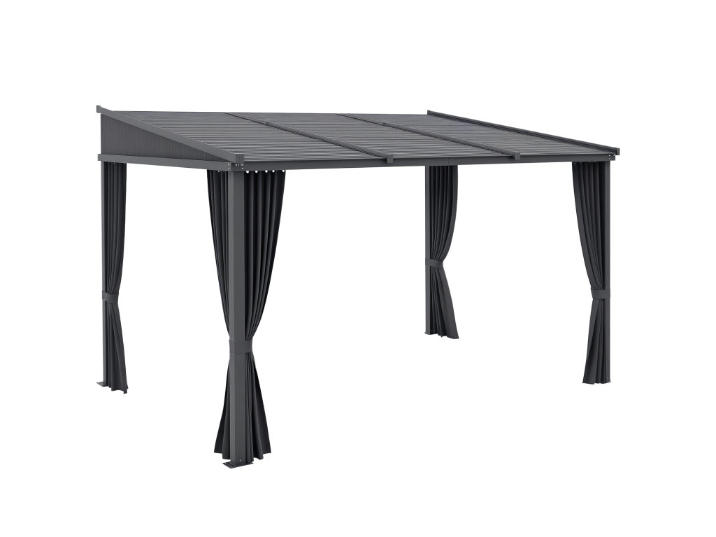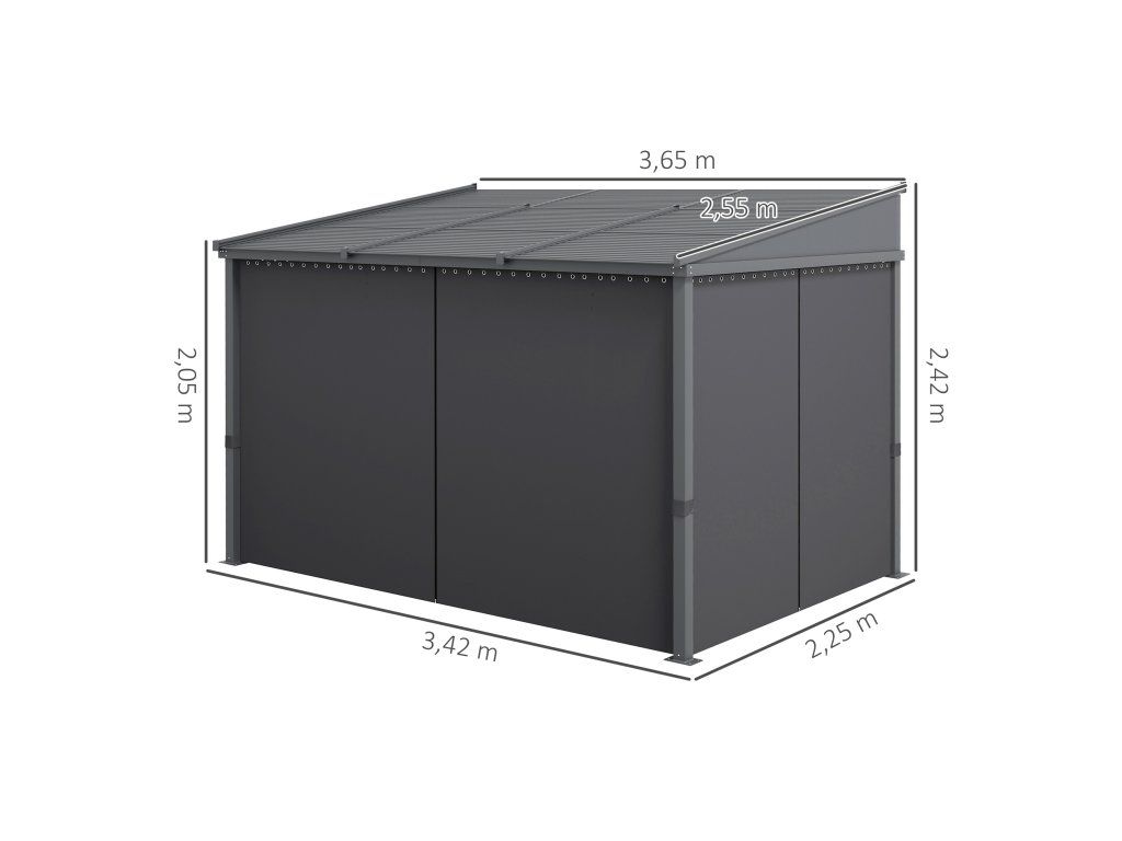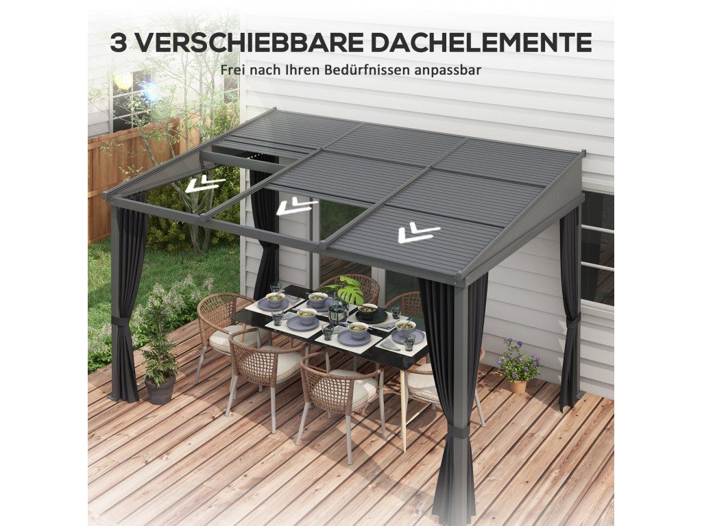 Outsunny pergola 3,65 x 2,55 m, pavilon s posuvnou střechou a závěsy, zastřešení terasy na zahradě a dvoře, hliník a kov, tmavě šedá |