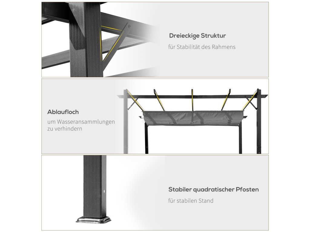 - DOKONALÁ OCHRANA PŘED SLUNCEM: S naší pergolou jste chráněni před přímým slunečním zářením a můžete sedět a odpočívat ve stínu.