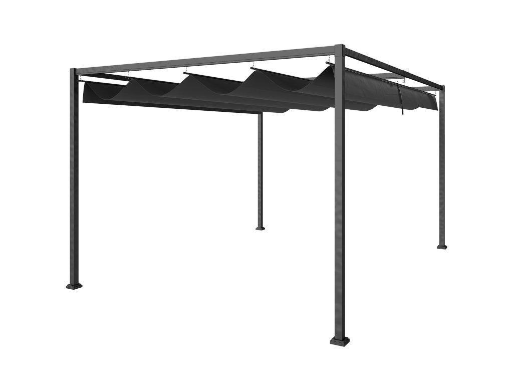 Outsunny pergola altán zastřešení terasy s posuvnou střechou 298x213x221cm polyester černá šedá pro zahradu a terasu |