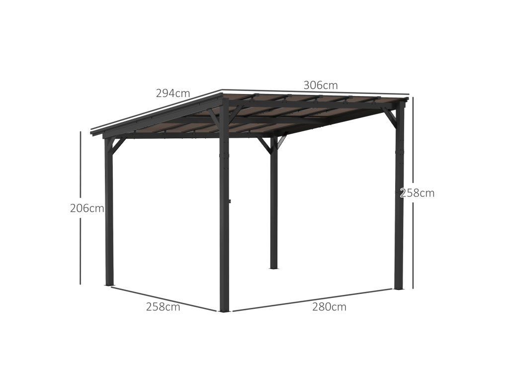 - ✔ Celkové rozměry: 306L x 294W x 258/206H cm