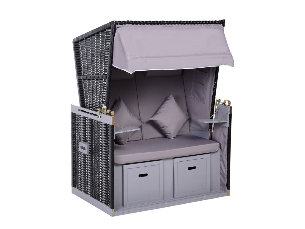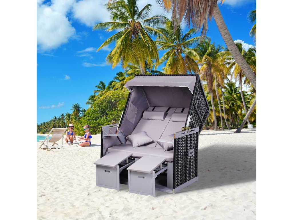 Outsunny plážové lehátko s plným sklápěním dvojité lehátko se střechou zahradní lehátko držák na kelímek lehátko PE ratan šedé 118 x 79 x 50 cm | Aosom