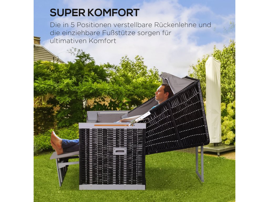 - PEVNÝ A ODOLNÝ: Rám plážového lehátka je vyroben z pozinkovaného železa a potah z plastového ratanu odolného proti povětrnostním vlivům.