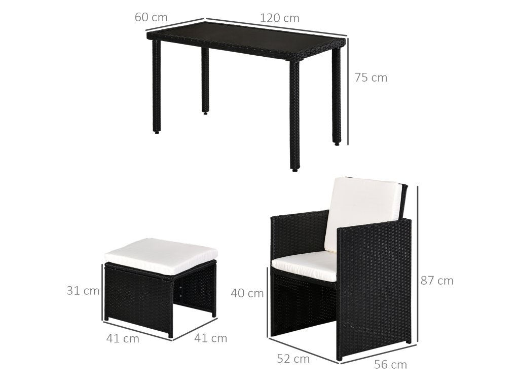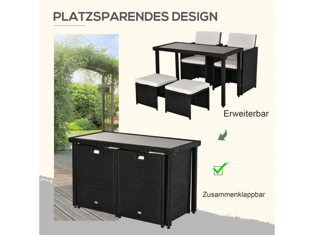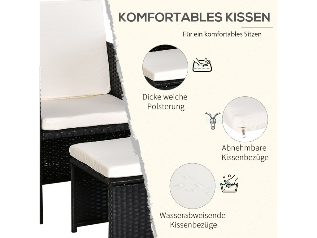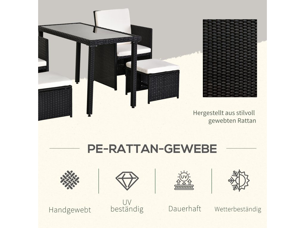 Outsunny polyratanový jídelní set 11 ks s polštáři černý, odolný proti povětrnostním vlivům a elegantní pro zahradu a terasu | Aosom.de