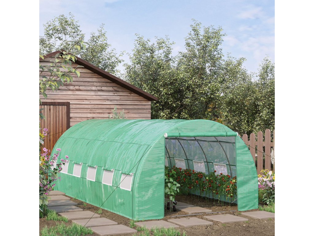 - Prostorný skleník: Tento prostorný skleník vám umožní pěstovat vaše oblíbené rostliny déle a efektivněji, protože je ochrání před ptáky a chladem. Je ideální pro pěstování tropických rostlin, zeleniny, ovoce, květin a mnoha dalších plodin.