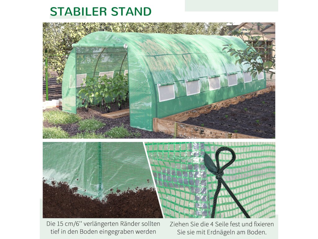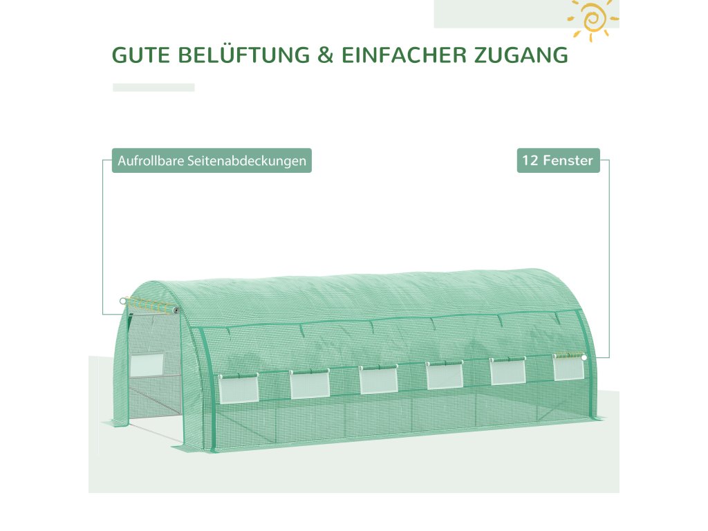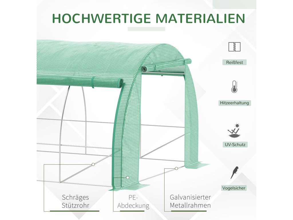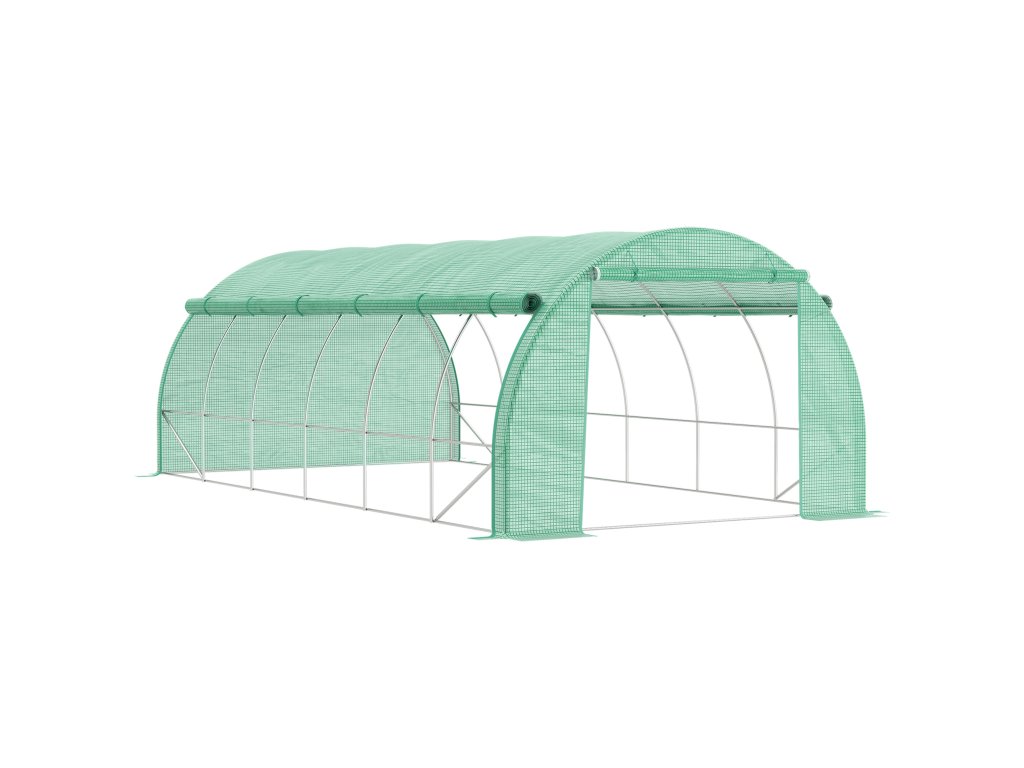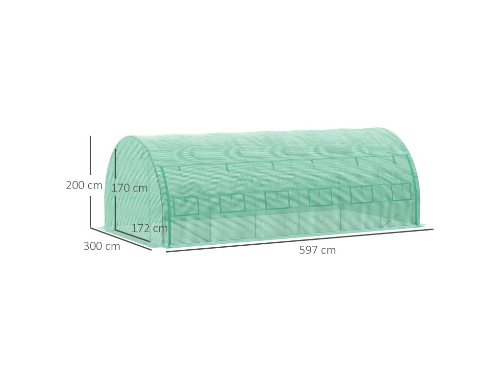 Outsunny polytunelový skleník 6x3x2m s UV ochranou, průchozí, rolovací kryty z trubkové oceli, zelený | Aosom.de