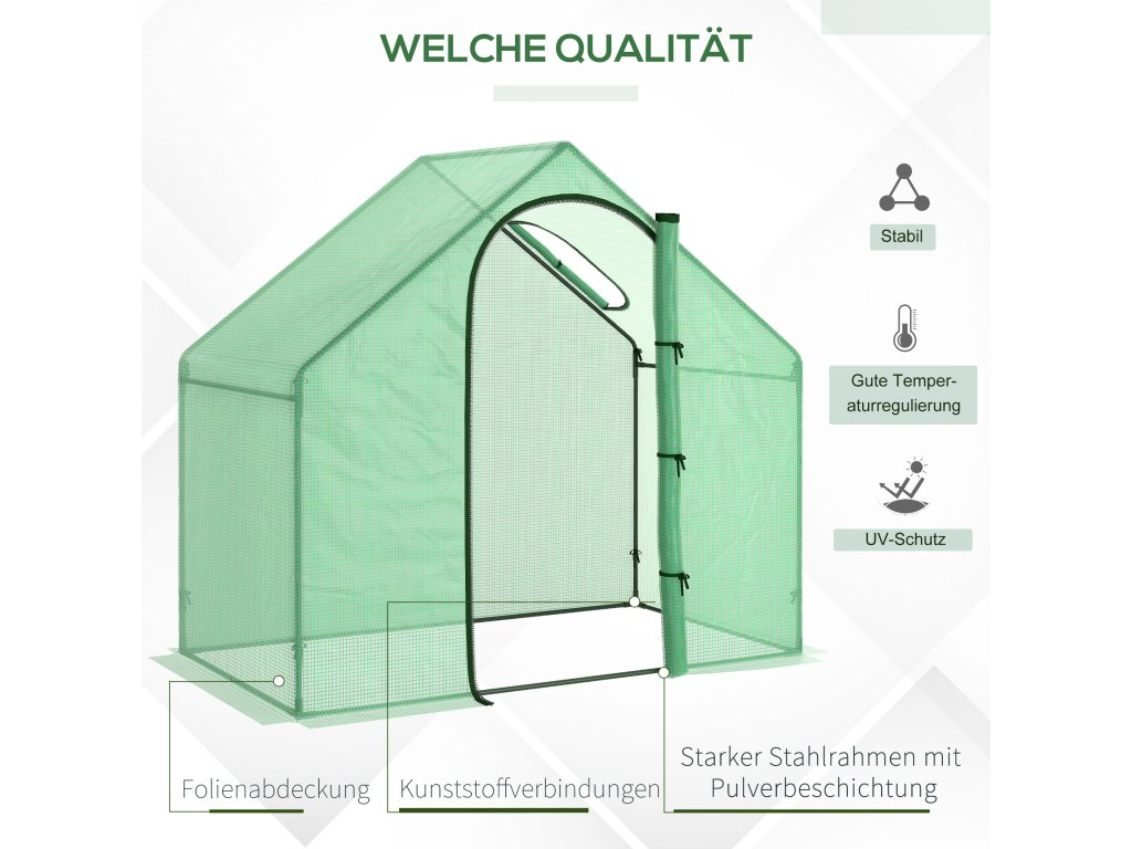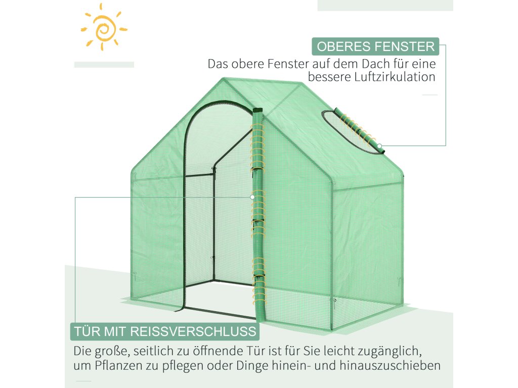 Náš skleník Outsunny je ideální volbou pro ty, kteří rádi zahradničí. Skleník umožňuje náskok pro růst vašich rostlin a pomáhá jim přežít nápor různých ročních období. Snižte riziko ztráty rostlin po přesunu do venkovního prostředí.
