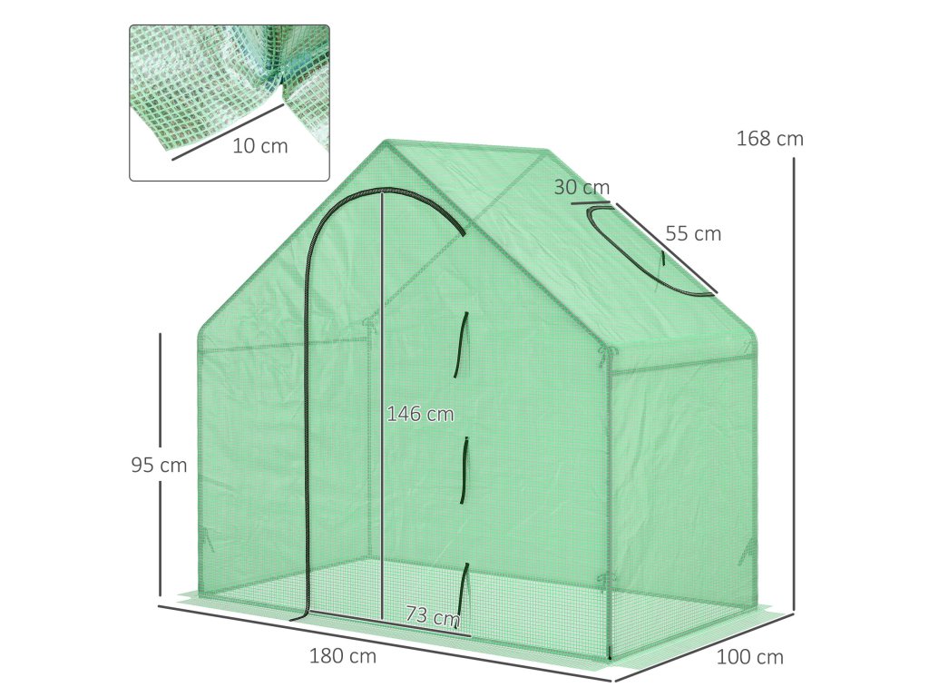 Outsunny polytunelový skleník Skleník na rajčata Skleník s oknem a dveřmi Zelený ocelový PVC plast 180 x 100 x 168 cm | Aosom