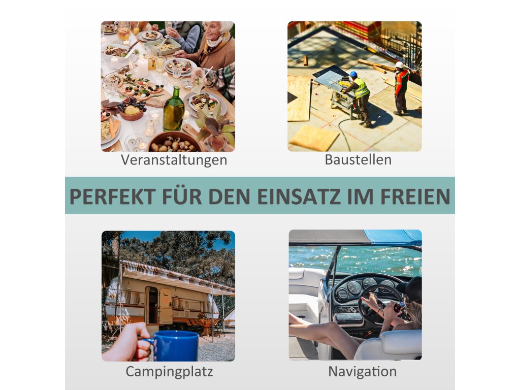 - ✔ Ideální pro venkovní akce, staveniště, kempování, pikniky, grilování, rybaření a další