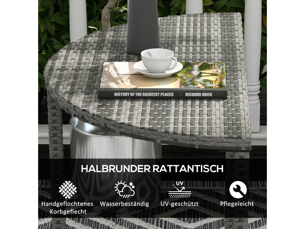 Outsunny půlkruhový balkonový stolek 100 x 50 x 74 cm zahradní stolek z polyratanu a kovu šedý pro terasu a balkon | Aosom.de