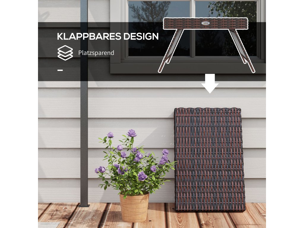 S tímto skládacím ratanovým stolem od společnosti Outsunny si užijete příští párty u bazénu nebo grilování venku! Tento zahradní nábytek je ideální na zahradu, ať už máte pár nebo mnoho hostů. Tento stůl je shora dolů omotaný pevně tkaným ratanem, je odolný vůči povětrnostním vlivům a lze jej používat po celou sezónu.