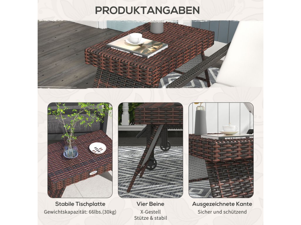 Outsunny ratanový skládací zahradní stůl hnědý 60x41x41cm ideální na balkon a terasu | Aosom.de