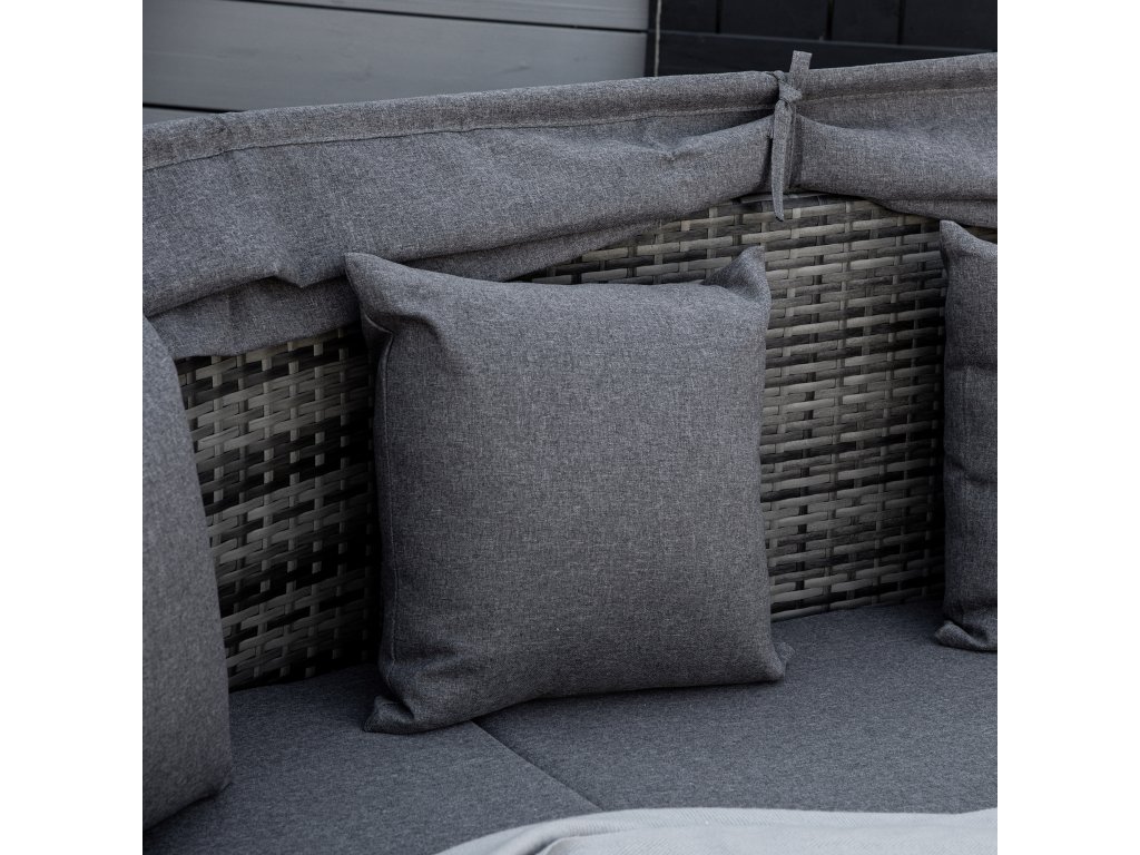 Outsunny ratanový sluneční ostrov 4-dílný se stříškou a sedací soupravou, 4 polštáře, kovově šedá, 230 x 145 x 80 cm pro zahradu a terasu |