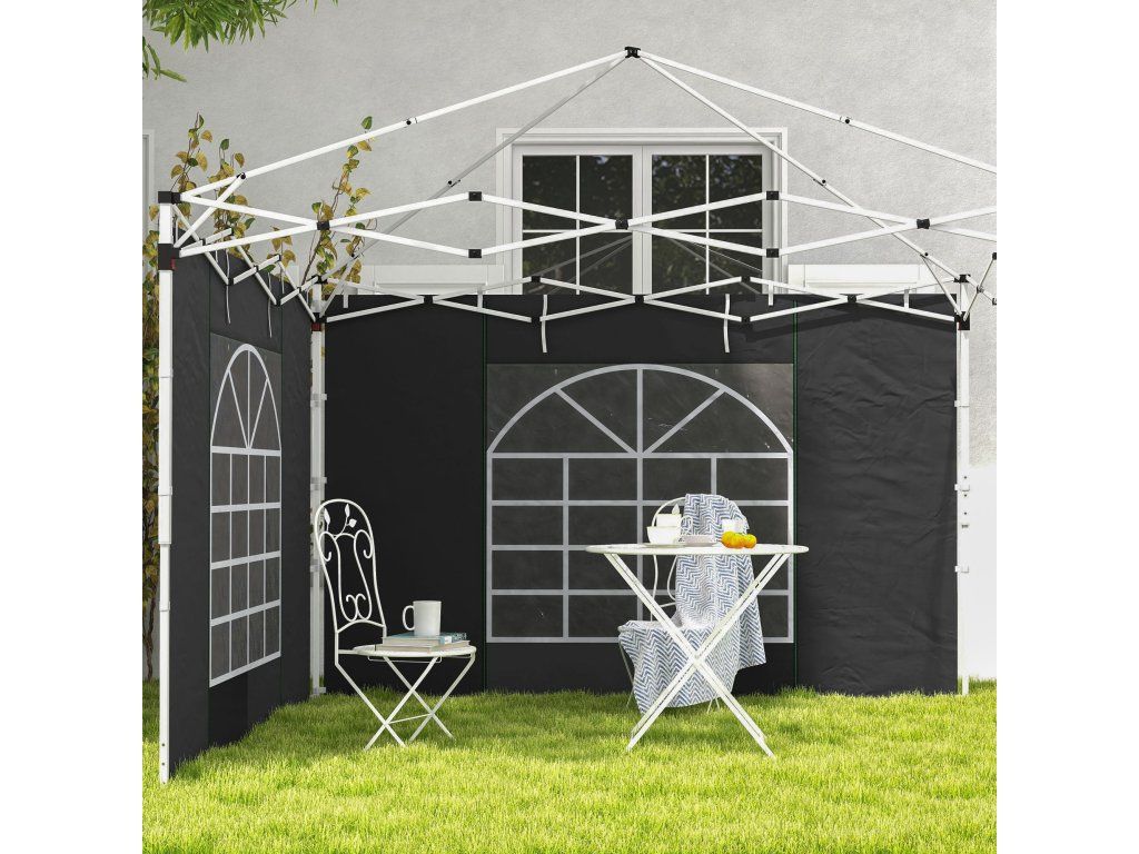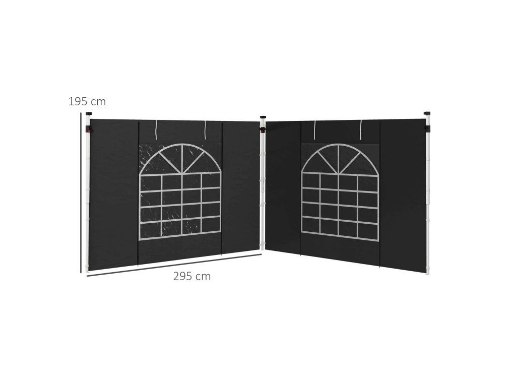 Outsunny sada 2 bočních panelů pro altán 3x3/3x6 m, boční panel s oknem a suchým zipem, voděodolné boční panely z tkaniny Oxford, jako ochrana proti větru a zástěna pro párty stan, černá barva