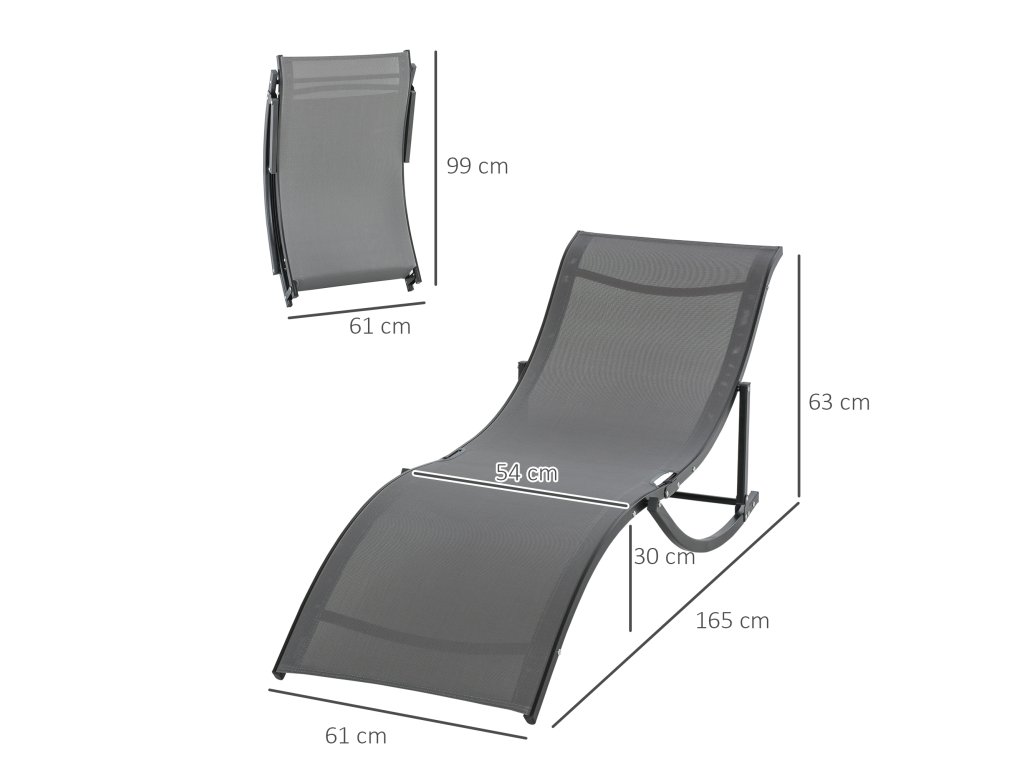 - Údaje o výrobku: Křeslo je vyrobeno z kvalitního materiálu, který je součástí balení: Celkové rozměry: 165L x 61W x 63H cm. Rozměry ve složeném stavu: 99L x 61W x 21H cm. Nosnost: 120 kg