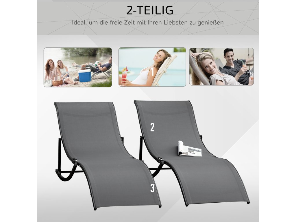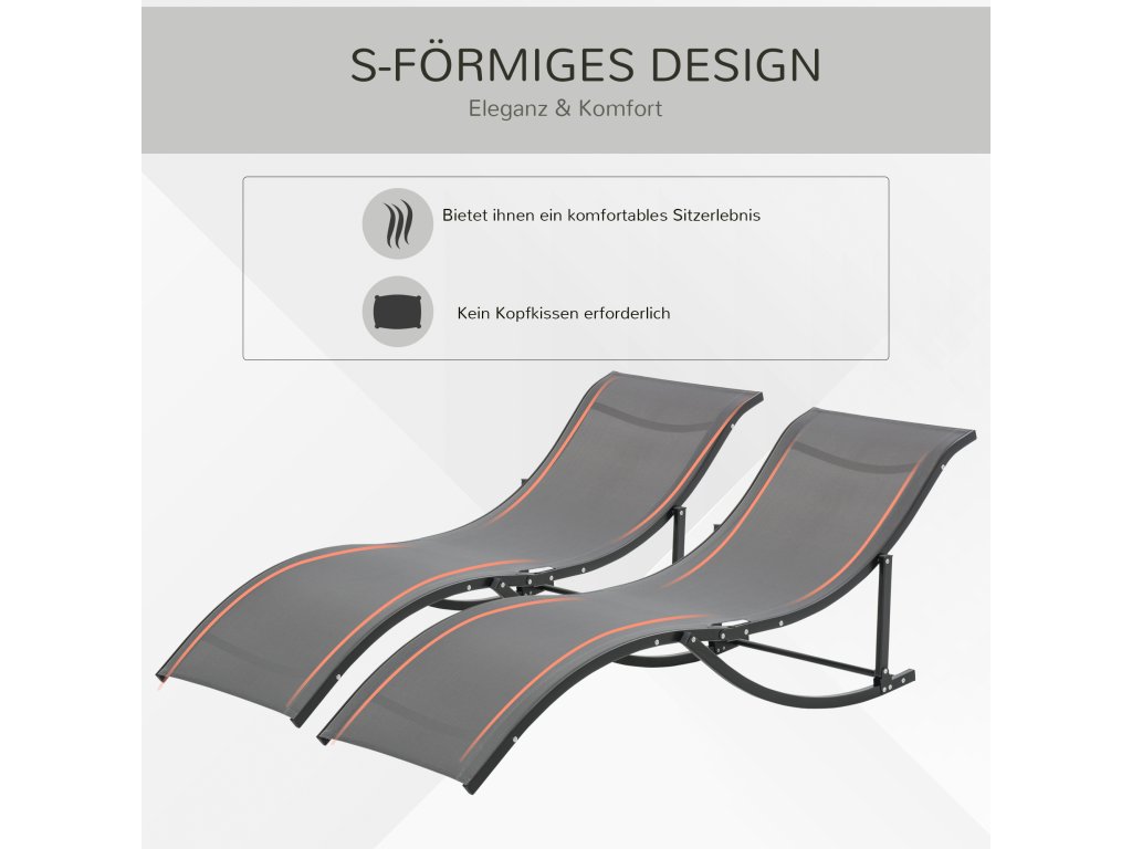 Představte si následující scénu: hřejivé sluneční paprsky, jemný vánek, vy a vaši přátelé si povídáte u bazénu nebo na zahradě a společně si užíváte volný čas. Tato dvě lehátka od společnosti Outsunny jsou pro takovou příležitost nepostradatelná. Jsou navržena v elegantním designu ve tvaru písmene S, který je ergonomicky tvarovaný a vybízí k relaxaci a odpočinku. Užijte si volné chvíle venku s těmito lehátky od společnosti Outsunny.