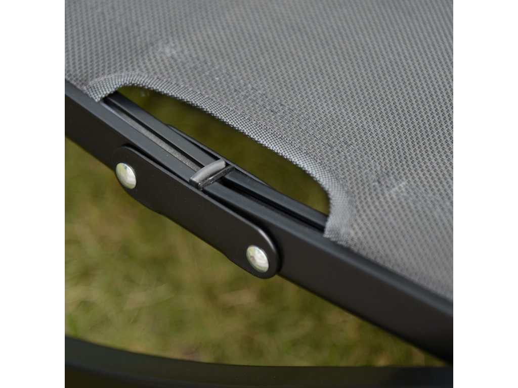 - Lehká konstrukce: Toto lehátko tvoří konstrukce z prodyšné tkaniny Texteline a hliníkový rám.