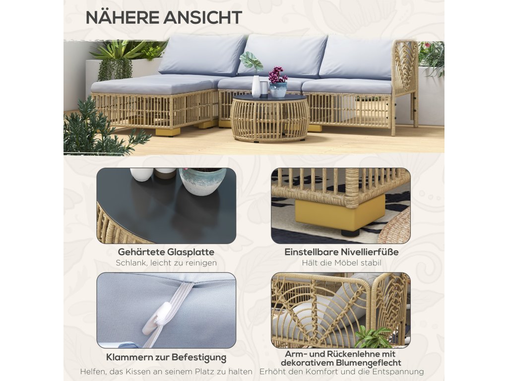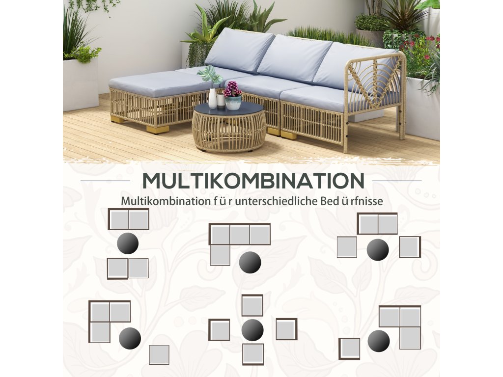 Outsunny sada zahradního nábytku z ratanu 5dílná sada balkonového nábytku s polštáři rohová rozkládací pohovka s taburetem ocelový terasový nábytek ve světle šedé barvě | Aosom.de