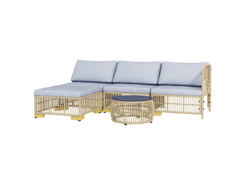 - 5dílná sada: Naše sada ratanového zahradního nábytku obsahuje dvě křesla bez područek, rohovou pohovku, taburet a kulatý konferenční stolek a nabízí pohodlné sezení až pro 4 osoby. Různé možnosti konfigurace umožňují všestranné kombinace, které se hodí pro jakoukoli náladu nebo událost - ideální pro zahradu, dvůr, terasu nebo prostor u bazénu