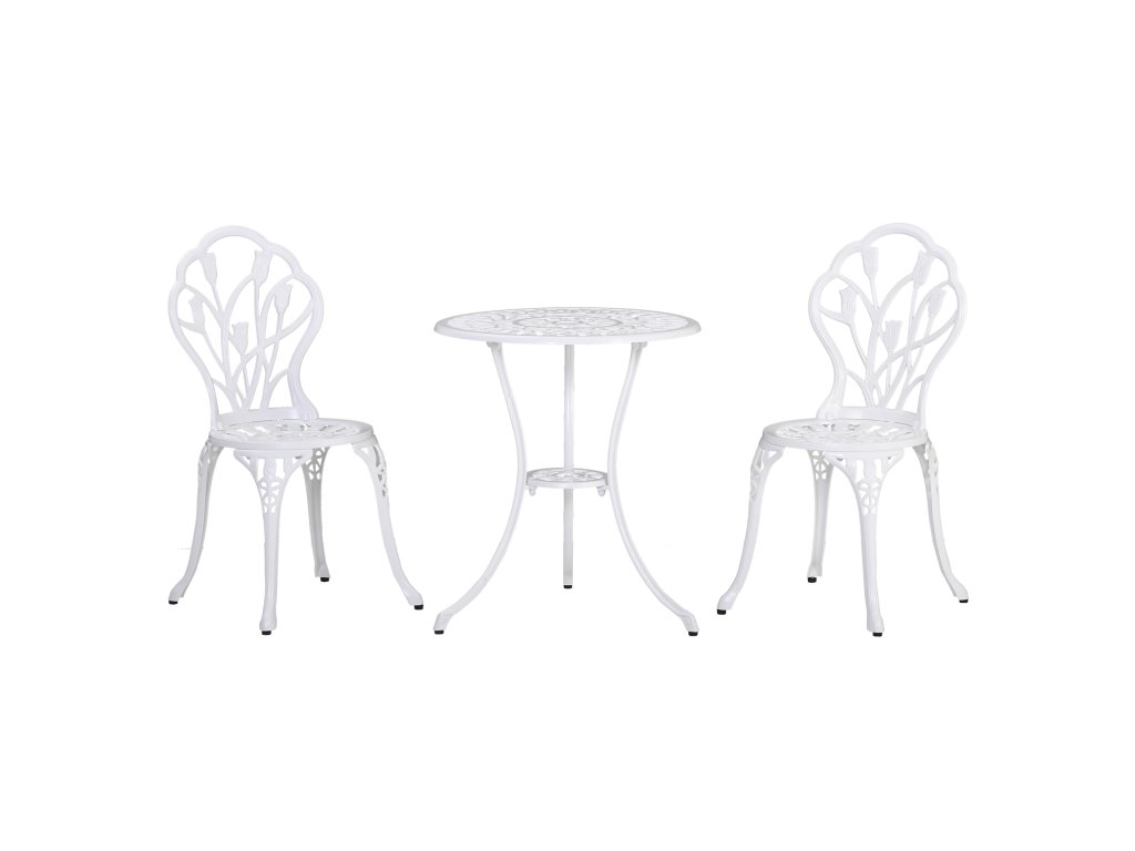 Outsunny sedací souprava pro 2 osoby jídelní set zahradního nábytku se stolem a 2 židlemi, hliníková s otvorem pro slunečník, bílá pro balkon a terasu | Aosom.de