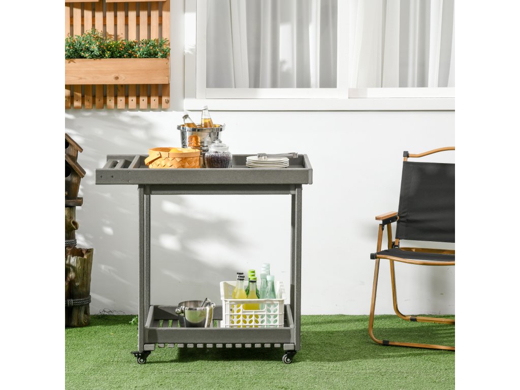 Pořádání velkých akcí na zahradě může být obtížné, pokud nemáte správné vybavení. Nyní je čas, abyste si oslavy s rodinou a přáteli venku co nejvíce usnadnili, a venkovní servírovací vozík Outsunny je k tomu ideálním kusem nábytku. Horní police nabízí prostor pro nápoje a jídlo, spodní police pro přísady, kuchyňské náčiní atd. Přepravu navíc usnadňují 4 univerzální kolečka. Tento servírovací vozík od společnosti Outsunny je dokonalým řešením pro skladování.