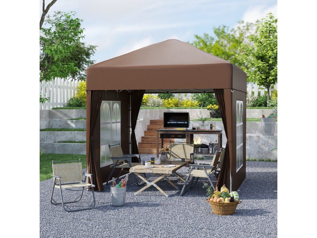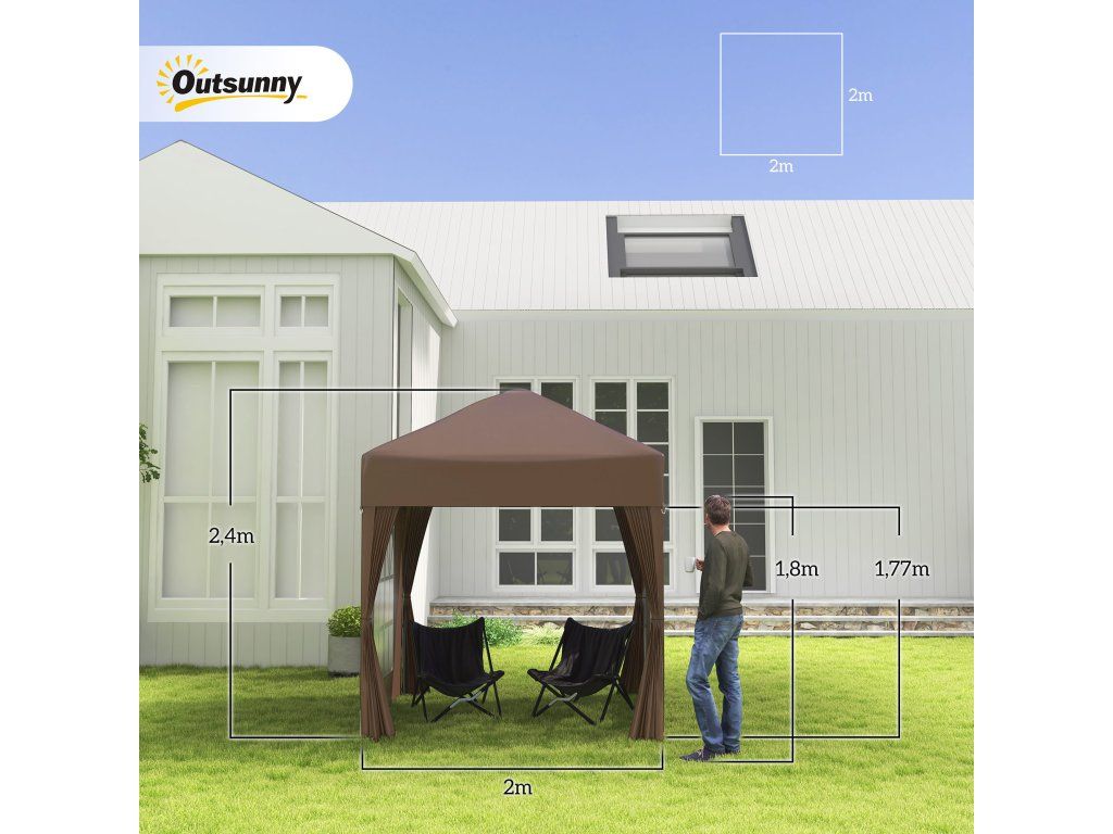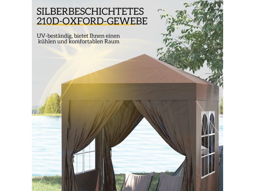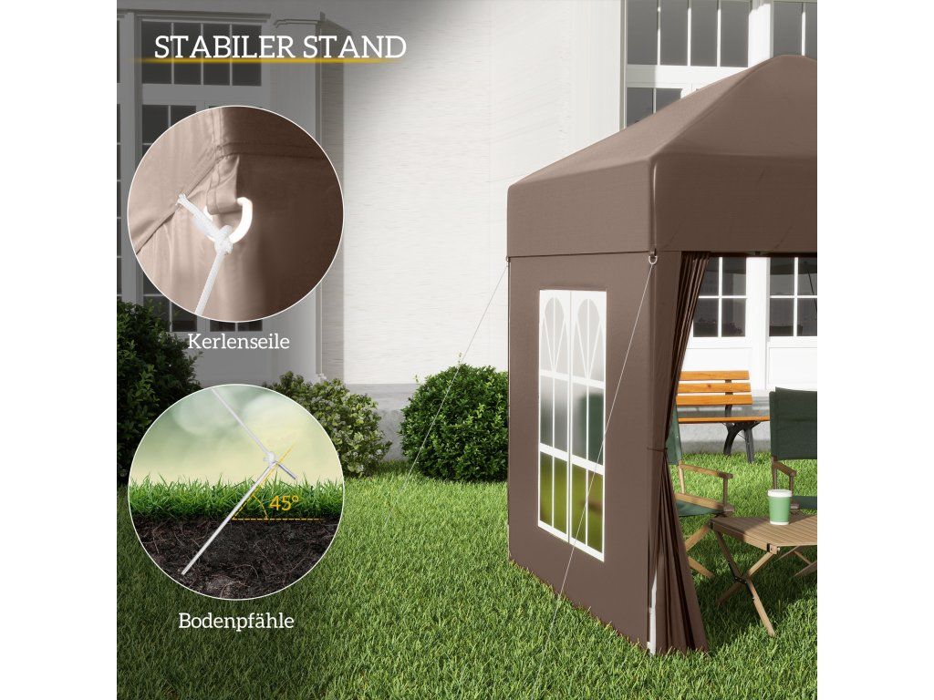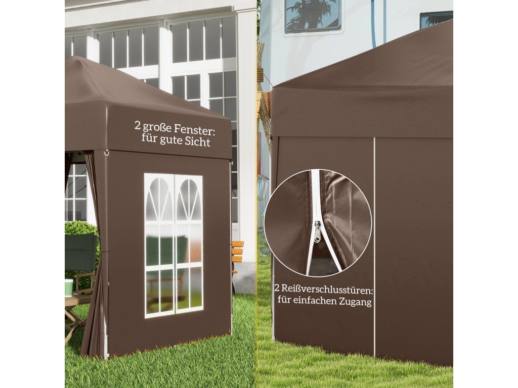 - Rychle postavitelná ochrana proti slunci: snadno přenosný a postavitelný pavilon (2 x 2 m) se 4 odnímatelnými stěnami pro různé venkovní akce