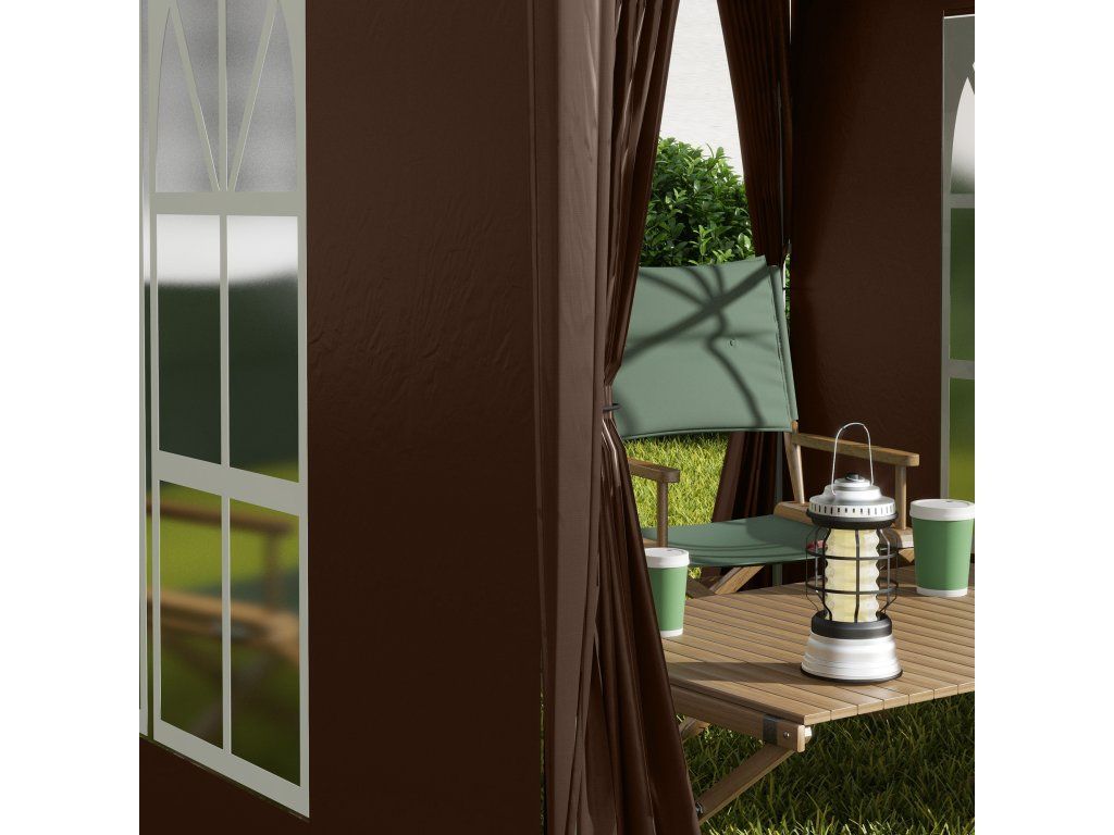 - Snadná montáž: Boční stěny párty stanu se suchým zipem pro snadnou montáž, 2 boční stěny s velkými okny pro jasný výhled a 2 dveře se zipem pro snadný přístup