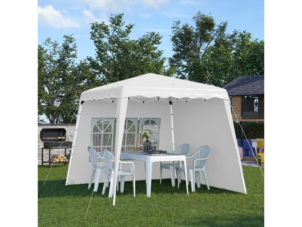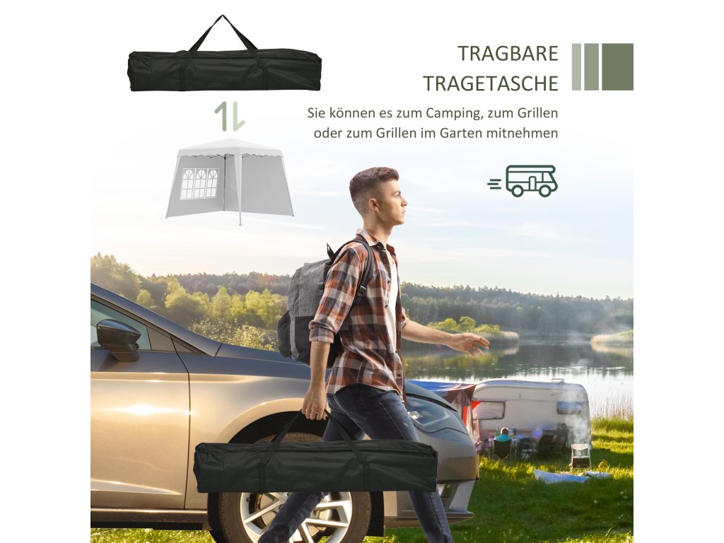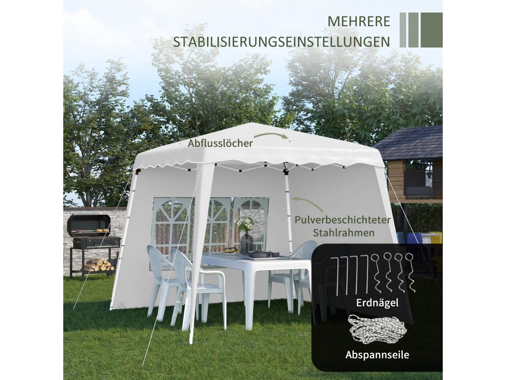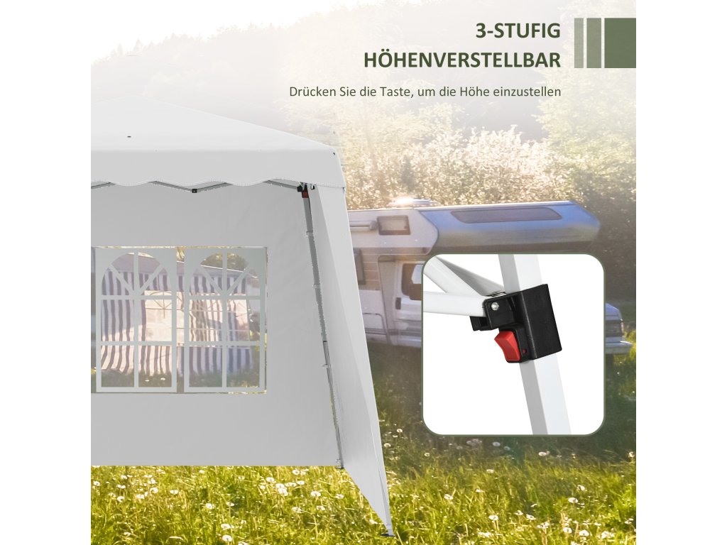 Outsunny skládací altán vodotěsný 2,4 x 2,4 m UV 50+ nastavitelná výška s lany kolíky boční stěna taška na přenášení Oxford White | Aosom.de