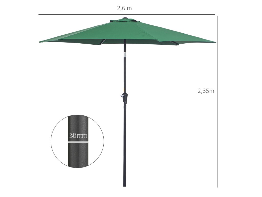 Outsunny skládací slunečník zahradní slunečník s ruční klikou hliníkový 180/㎡ polyester tmavě zelený ∅2,6 x 2,35 m | Aosom