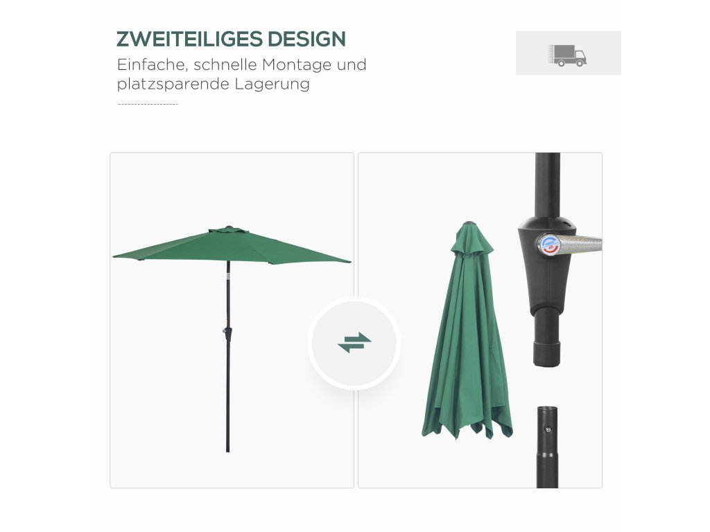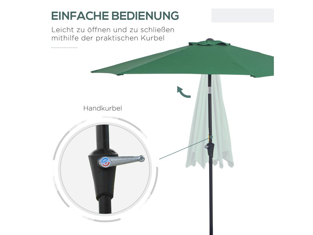 - ✔ Ruční klička umožňuje snadné otevírání a zavírání slunečníku