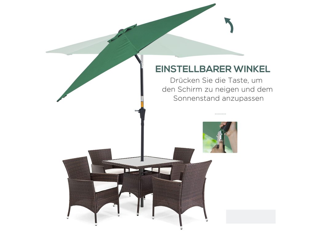 - SNADNÁ MANIPULACE: Slunečník lze snadno nastavit pomocí ruční kliky. Slunečník lze také naklápět do všech směrů.