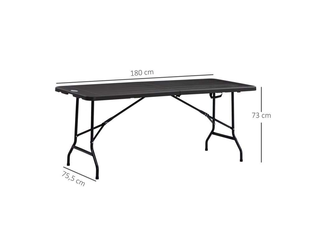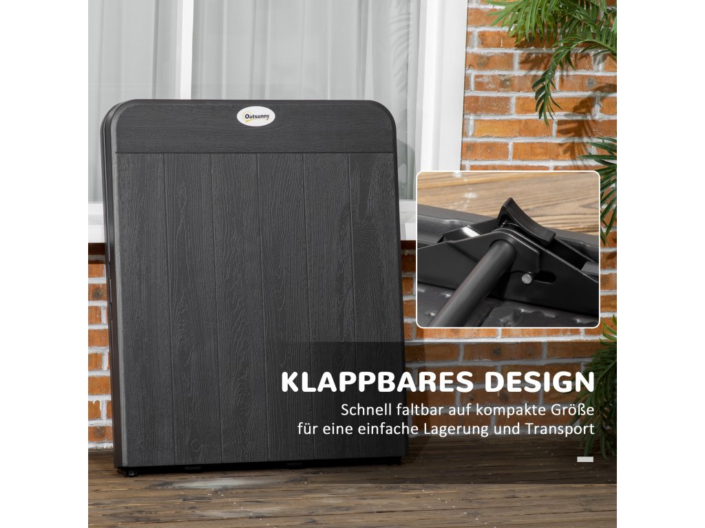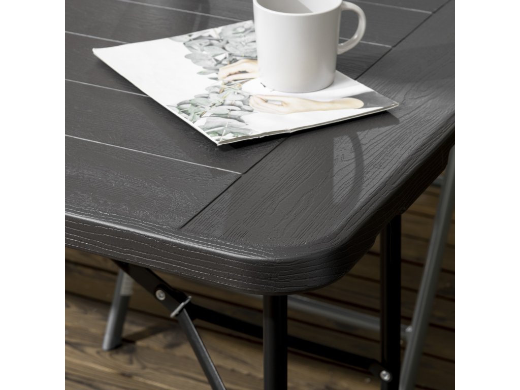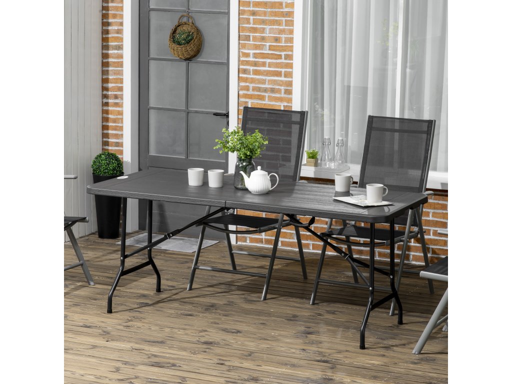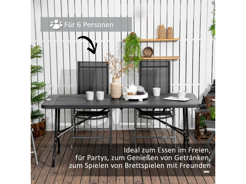 Outsunny skládací zahradní stůl pro 6 osob, bufetový stůl s ocelovým rámem, terasový stůl vzhled dřeva 180 x 75,5 x 73 cm, tmavě šedý | Aosom.de
