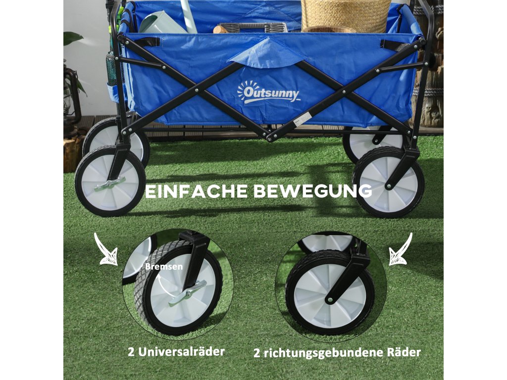 Outsunny Skládací zahradní vozík 360° Transportní vozík Plážový vozík s ocelovým rámem Oxford 93 x 49 x 75-100 cm | Aosom.de