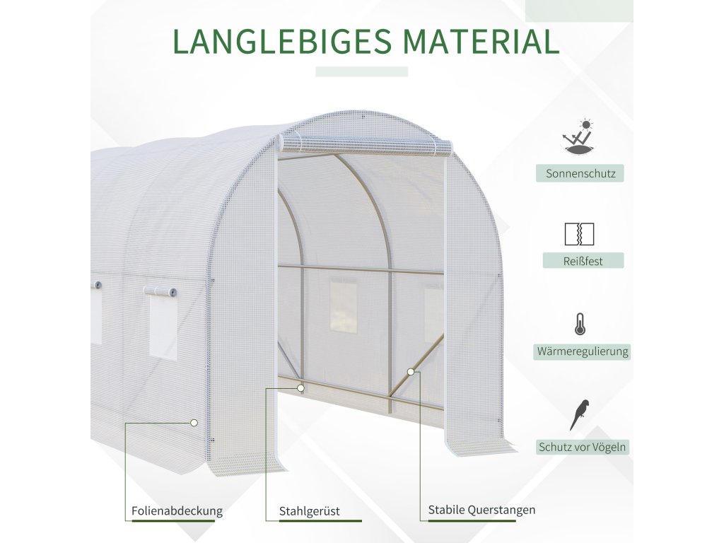 - ✔ Odolná, trvanlivá a mrazuvzdorná fólie chrání vaše rostliny před povětrnostními vlivy