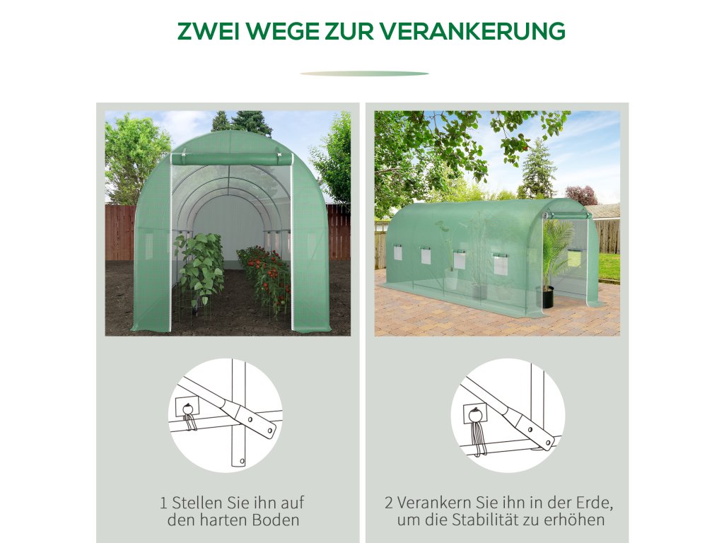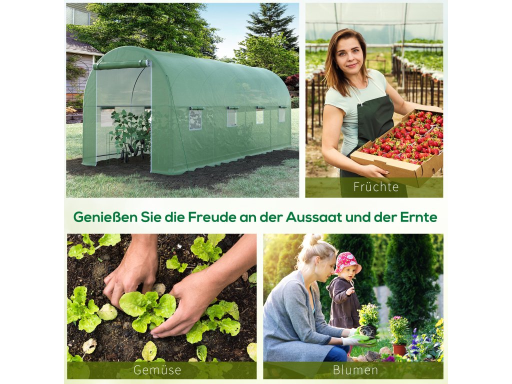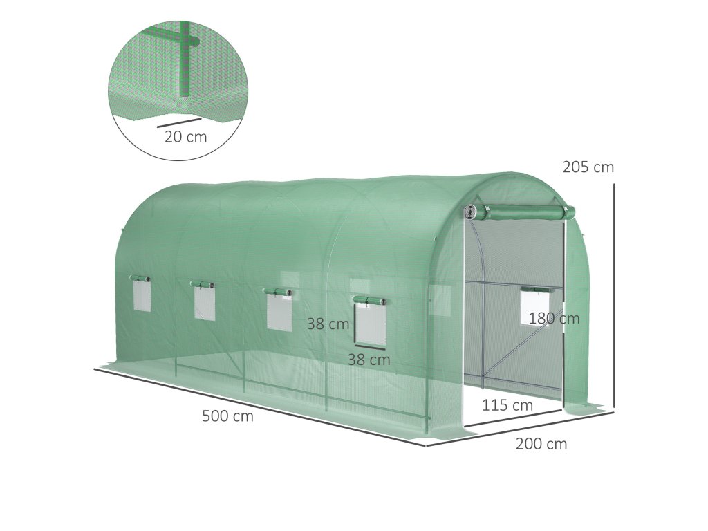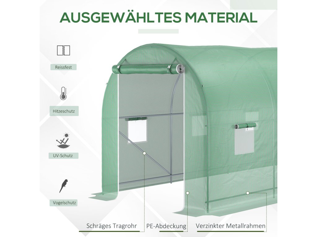 Outsunny Skleník na rajčata s oknem 500x200x210cm zelený polytunel pro zahradu a pěstování rostlin | Aosom.de