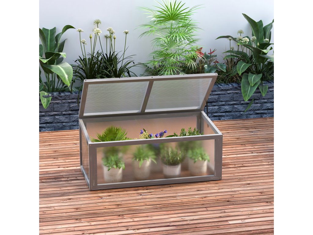 Outsunny skleník s krytem, odolný proti povětrnostním vlivům, ze dřeva a polykarbonátu, šedý, 90x46x40cm| Aosom