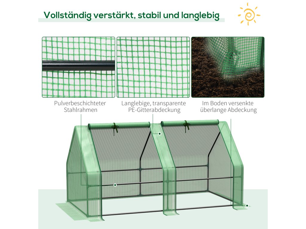 - Odolný vůči povětrnostním vlivům: Vaše drahocenná semínka jsou dobře chráněna před mrazem a nepřízní počasí. Umožňuje to PE fólie o hmotnosti 140 g/m². Ta je navíc odolná proti UV záření a trvanlivá.