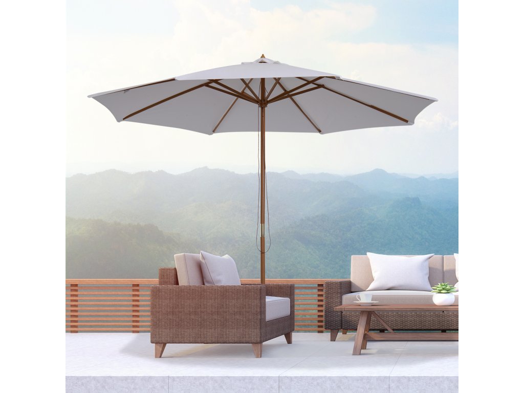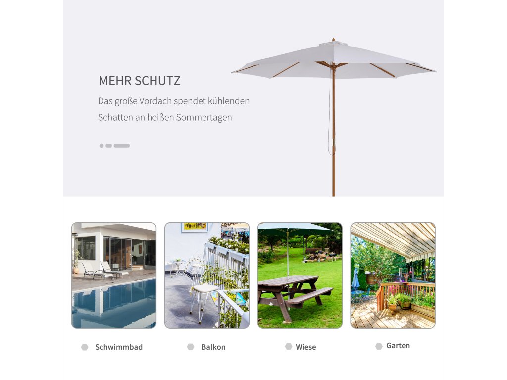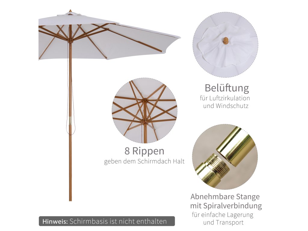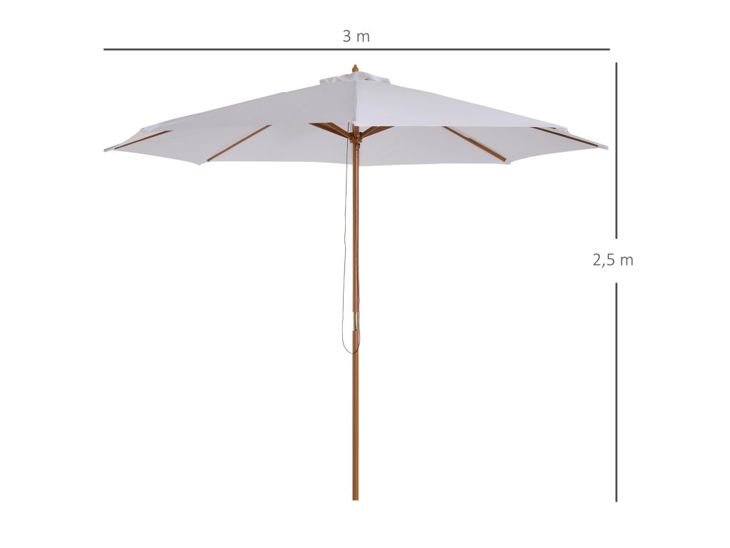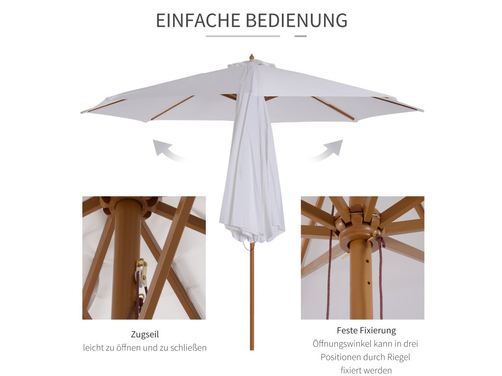 Outsunny slunečník dřevo 300 cm dřevěný slunečník zahradní slunečník balkonový slunečník bambusový krémový bílý | Aosom