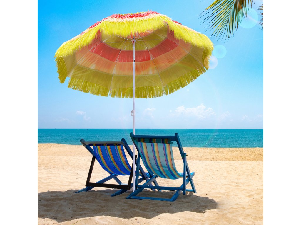 - Dekorativní havajský slunečník: Kompaktní, výškově nastavitelný slunečník. Ideální pro návštěvu pláže nebo relaxaci na zahradě, balkoně či terase.