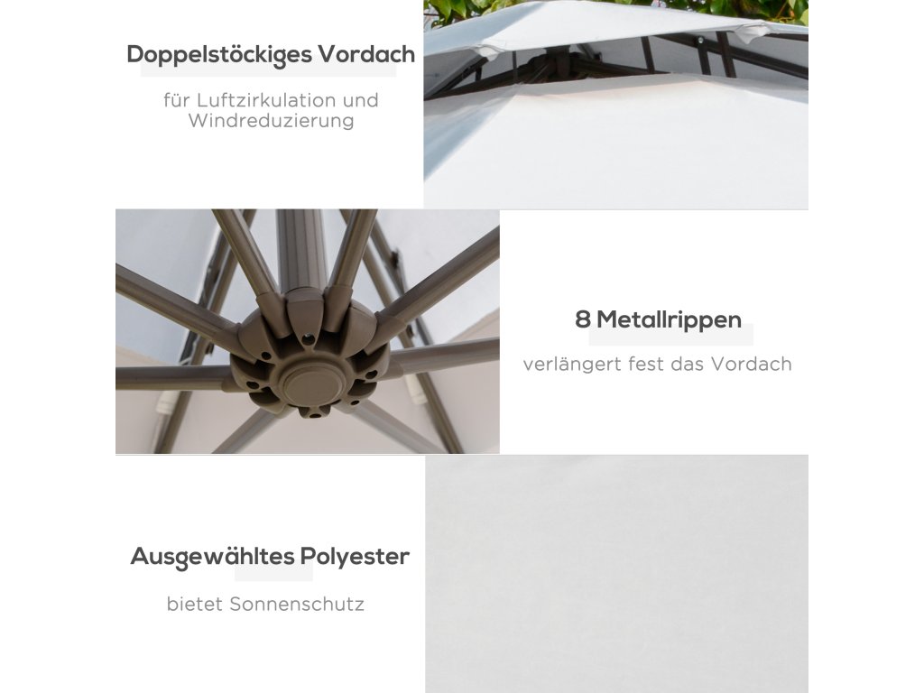 Outsunny slunečník konzolový slunečník Ø2,67 x 2,45 m klička slunečník s dvojitou stříškou křížová základna ocel venkovní ochrana proti slunci polyester ocel světle šedá | Aosom