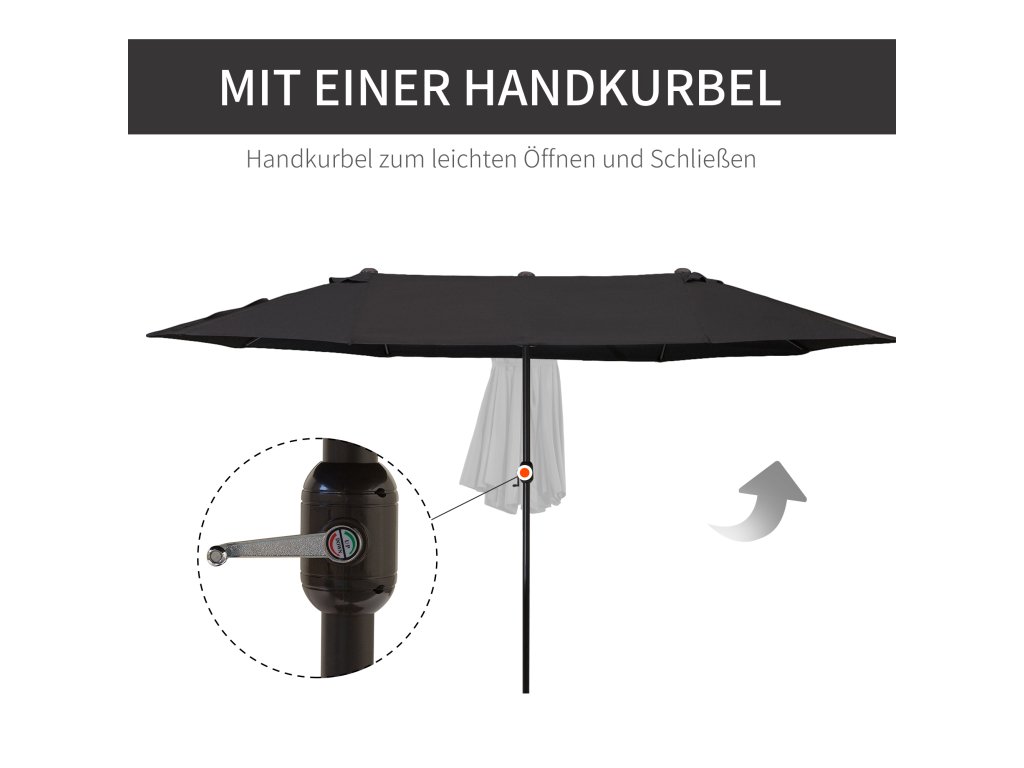 Outsunny slunečník zahradní slunečník trh slunečník dvojitý slunečník terasa slunečník s ruční klikou černý ovál 460 x 270 x 240 cm | Aosom